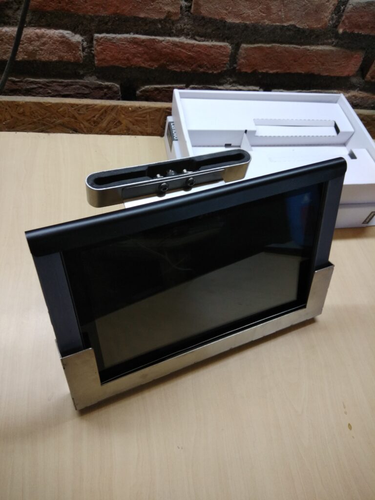 Interactive display stand for 10” tablets used in online taxis, designed for dynamic advertising and ease of use.